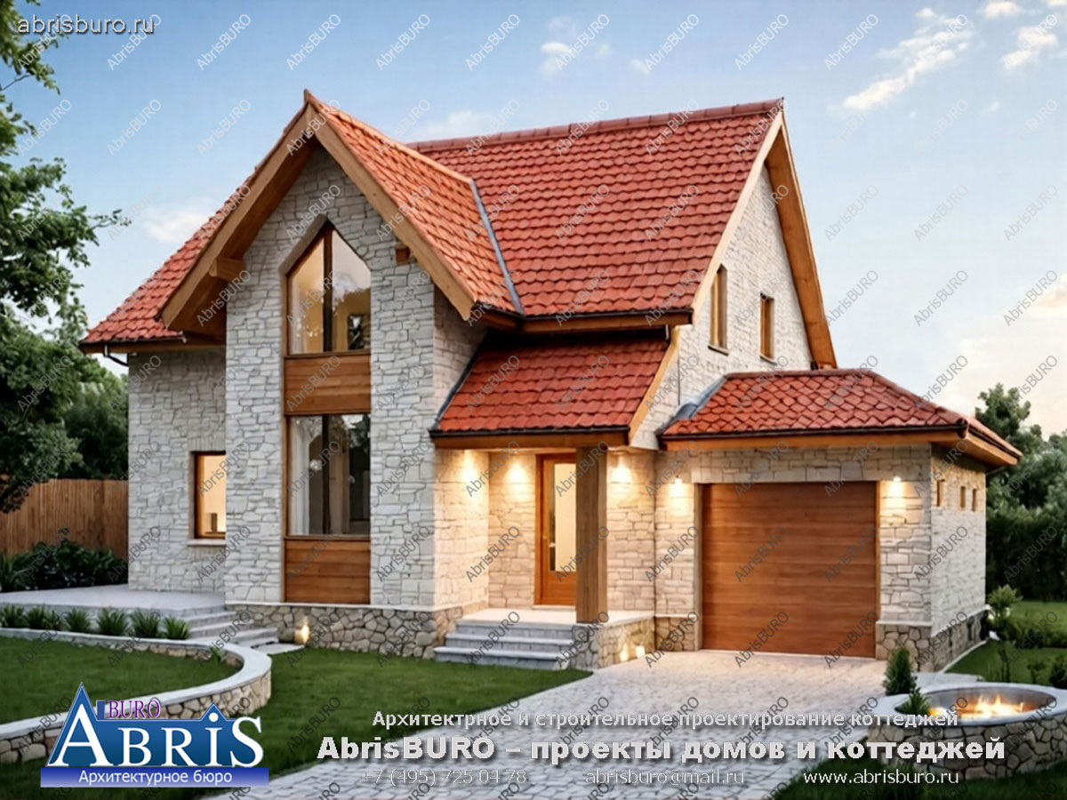 Проект мансардного коттеджа K1771-199 с гаражом и 5 спальнями