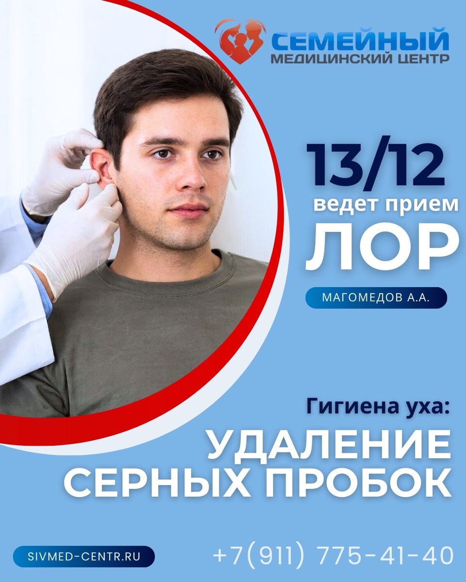 НЕ РИСКУЙТЕ СЛУХОМ: ДОВЕРЯЙТЕ УДАЛЕНИЕ СЕРНЫХ ПРОБОК ТОЛЬКО ЛОР-ВРАЧУ! Кажется, что может быть проще? Промывание серной пробки — знакомая многим быстрая процедура. Однако ее кажущаяся простота обманчива и таит в себе серьезные риски🚫 Почему это НЕ домашняя процедура⁉️ ❕Неправильная техника может травмировать барабанную перепонку и слуховой проход. ❕Есть риск протолкнуть пробку еще глубже. ❕Только врач может верно оценить состояние уха и исключить противопоказания (перфорация перепонки, воспаление). Доверяйте специалисту🙏 В нашей клинике эту манипуляцию проводит опытный врач-отоларинголог. Процедура выполняется стерильным инструментом, с контролем каждого этапа. Это гарантия безопасности, эффективности и вашего комфорта💯 🗓️ Удобно записаться: наш ЛОР-врач принимает по субботам. Цените свое здоровье. Даже простые вещи требуют профессионального подхода. С заботой о вас! Семейный медицинский центр ❤️ 📞 +7 (911) 775-41-40 ☎️ 8 (8137 Показать полностью... Наш канал в Max, вс