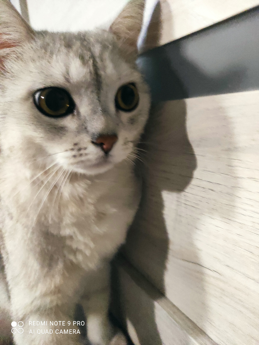 Котик пришёл к двери и ждёт , но дверь была открыта