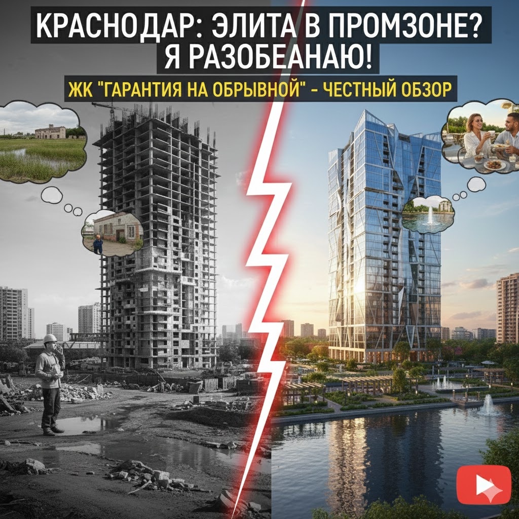 Запах мокрого бетона, крики прорабов и... неожиданная свежесть реки? Я стою посреди того, что риелторы называют «будущим элитным анклавом», а местные — «тупиком у мясокомбината». Это Обрывная. Место, где амбиции застройщика сталкиваются с суровой реальностью краснодарской промзоны. Здесь обещают рай в 5 минутах от центра. Но я здесь не для того, чтобы читать вам рекламные буклеты. Я здесь, чтобы понять: это честный обзор новостроек Краснодара или очередная попытка продать красивый воздух? Пристегнитесь, будет трясти. Давайте сразу начистоту. СК «Гарантия» — это не новички, которые вчера торговали шаурмой, а сегодня льют бетон. Они уже сделали «Гарантию» на Восточно-Кругликовской, которая выглядит так, будто прилетела из киберпанка. Репутация у них железобетонная. Юридическая безопасность? Скучно, но критически важно. Эскроу-счета, ФЗ-214. Всё чисто, как слеза младенца. Если вы ищете криминальный триллер с обманутыми дольщиками — листайте дальше, здесь всё стерильно. Строят они пугающе