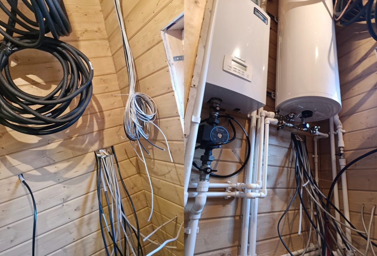 СЛЕВА: Стена, на которую мы подписывались собрать и повесить щиток. СПРАВА: Эта же стена в реальности. Оумайгадбл. В какой же блудняк мы вписались 🙀 Задача становится чуть более интересной с внезапным появлением АВР и игрушечного, на 5.5 киловатт, генератора и это при электрокотле который хочет кушать 12 киловатт. Заказчик верит в способности гены к генерации, максимально уверен в правильности своего выбора и закрыт для предложений. Поэтому мы смонтируем только непосредственно автоматику. ну, и чтобы в дальнейшем у заказчика всё получилось, надо придумать как усыпить электрокотел при работе от генератора в условиях когда у нас нет ни одного лишнего кабеля, ни пары контрольных жил, ни даже места. (решение, если что, в комментариях) #elekt_riki #щитвкотельной #сборкащитов