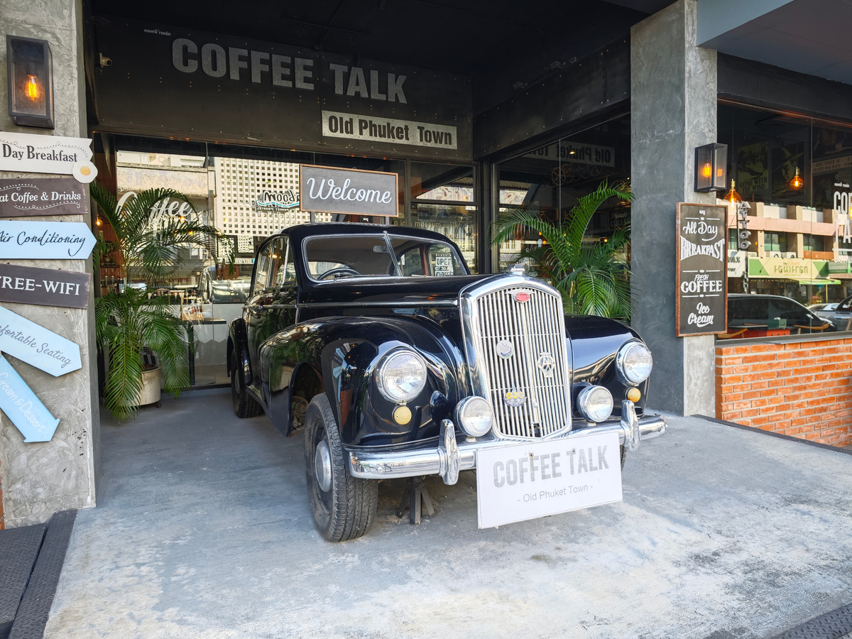 Ориентиром для входа в музей служит ретрокар c надписью "Coffee Talk" на автомобильном номере под передним бампером.