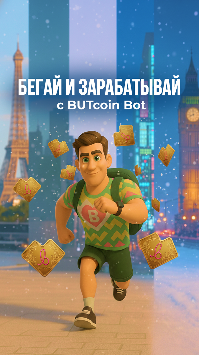 Хватит бегать просто так! Присоединяйся к BUTcoin bot и зарабатывай Буткойны