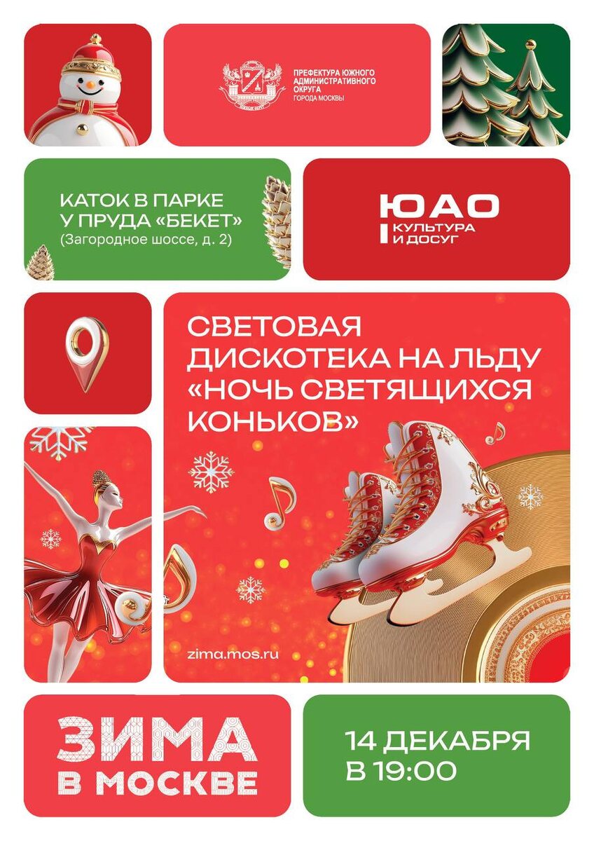 14 декабря в 19:00 в парке «Бекет» пройдет световая дискотека на льду «Ночь светящихся коньков» в рамках проекта «Зима в Москве» ❄️
