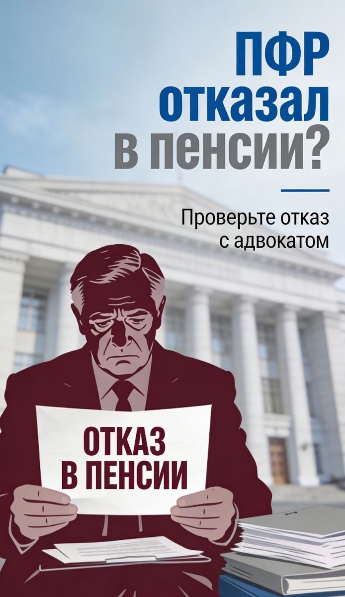 «СФР отказал в пенсии? Возможно, вы теряете то, что уже заработали!» Отработали 15 лет в районах Крайнего Севера? 25 лет - учителем? 30 лет - медицинским работником? Были шахтёром, крановщиком или артистом и выработали необходимый стаж? А Пенсионный фонд отказал в назначении пенсии?Это не просто обидно - несправедливо. Адвокаты нашей коллегии работают с подобными случаями. Мы:анализируем отказы СФР и выявляем нарушения,при необходимости направляем адвокатские запросы для уточнения сведений,помогаем восстановить ваше право на заслуженную пенсию. Не соглашайтесь с отказом. Запишитесь на консультацию - разберём ваш случай и поможем вернуть заслуженные выплаты.