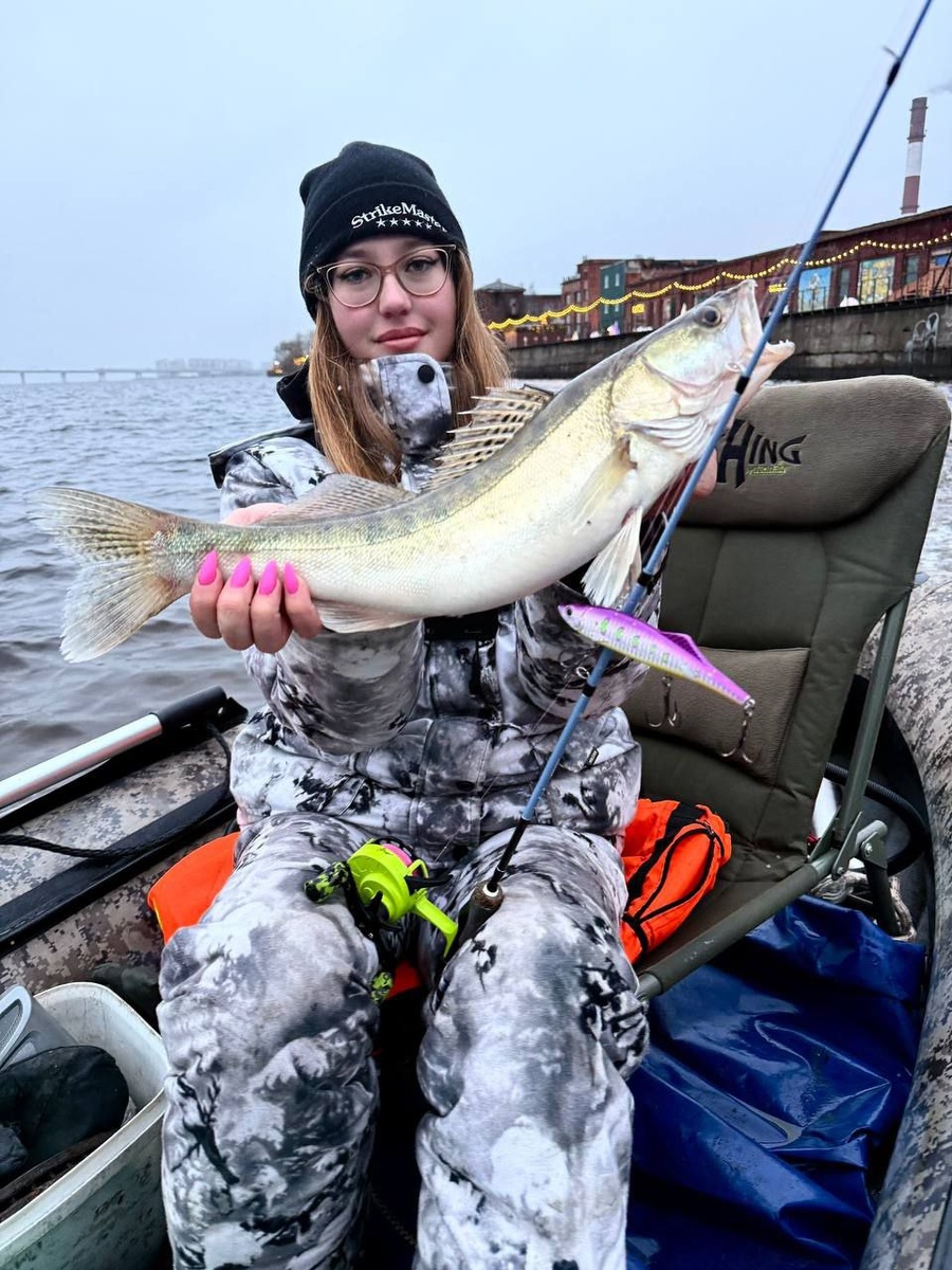11.12.25 🌊 Финский залив 🏝️ Канонерский остров 🎣 Спиннинг В очередную оттепель отправились на излюбленные точки вокруг Канонерского острова ловить судака в отвес на раттлины. Поутру моросил неприятный дождь и дул холодный ветер. Со слов знакомых экспертов, которые знают уже каждого клыкастого хищника в местной акватории, особой активности рыбы не ожидалось. Чтобы избежать бесклёвья, я приняла решение рыбачить на самые крупные раттлины из своего арсенала - Ecopro Kuda 140 и не прогадала - рыбе он пришёлся по вкусу. На блестящий фиолетовый цвет соблазнилось несколько судаков, пусть и некрупных, но нуля удалось избежать, и на экипаж из трёх человек было поймано 15 пищевых рыбин. На прошлой рыбалке пришлось поскакать по волнам, от чего одно из наших сидений на лодке сломалась пополам. Пришлось в этот раз установить в лодке фидерное кресло, и для удобства ловить длинным судачьим удилищем тестом до 50 граммов. Хочу отметить, что пробковая рукоятка на палке не давала ладоням быстро зам
