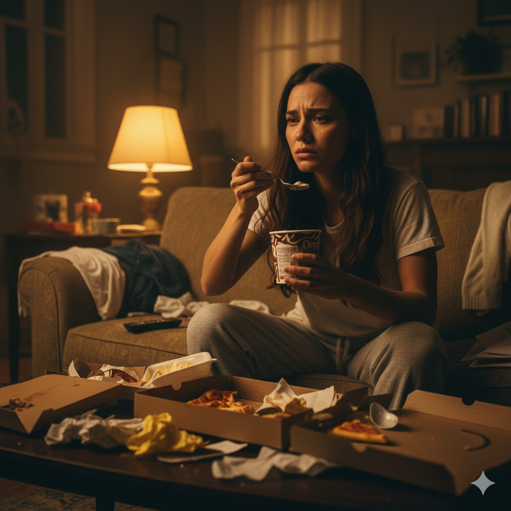 При стрессе организм выбрасывает кортизол: он повышает уровень тревоги, усиливает аппетит и «просит» калорийную, сладкую и жирную пищу, чтобы быстро пополнить энергию. Если реальной физической нагрузки нет, эта энергия не расходуется, а еда становится способом заглушить эмоции — тревогу, скуку, одиночество, усталость. Так формируется психогенное переедание: мы едим не из‑за голода, а чтобы изменить внутреннее состояние и на короткое время почувствовать облегчение и комфорт. После «заедания» действительно наступает краткое облегчение: уровень тревоги падает, мозг получает дофаминовую награду. Но затем появляются тяжесть, вина и стыд за переедание, что снова усиливает стресс и запускает желание ещё раз «заесть» неприятные чувства. Со временем мозг начинает воспринимать еду как основной способ восстанавливать равновесие, и любое сильное чувство (конфликт, усталость, страх, одиночество) автоматически ведёт к холодильнику. Психологи советуют начать с «дневника еды и эмоций»: записывать,