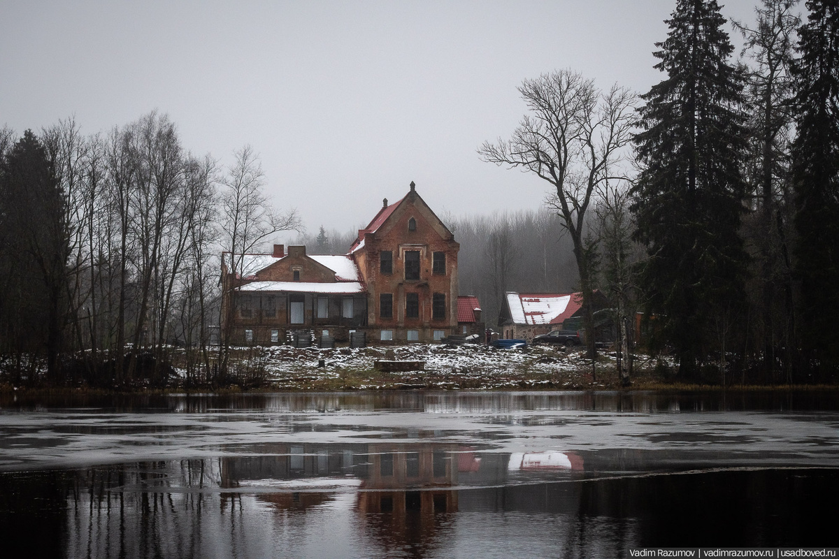 На днях я был в рабочей поездке по Ленинградской области и заехал в гости к новому владельцу усадьбы Утешение - Роману Сазонову-Гололобову. Всего около полугода прошло с того момента, как Роман выкупил усадьбу. Но уже сейчас можно отметить, что Утешение расцветает буквально на глазах. Я не поверил своим глазам, когда обнаружил, что сейчас вид на главный дом в неоготическом стиле открывается аж за несколько километров от усадьбы. Владелец Утешения вернул нам исторический виды на достопримечательность! В конце XIX столетия обзор на главный дом открывался ещё от церкви в Ратчино, а из Утешения хозяева усадьбы могли видеть храм Георгия Победоносца. Не менее прекрасные картины можно было наблюдать и с другого берега пруда, который расположен за домом. Усадебные постройки в окружении елей, лип и ольхи отражались в водной глади и обрамлялись живописными островками. Долгое время фасады дома скрывали заросли сорной растительности. Но теперь обзор на усадьбу открыт, и туристы уже сейчас могу
