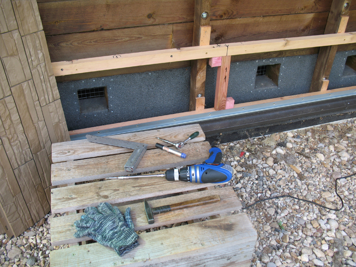 В панелях есть ограничители, но явный контроль зазора позволит избежать ошибок. Вертикальные стойки удобно устанавливать по месту по ходу монтажа панелей. Размер крайней панели надо будет подогнать по месту, обеспечив правильный зазор слева и ... ... возможность сдвига враво для попадания в замок предыдущей панели.