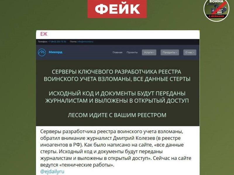 Сообщения о взломе Реестра воинского учёта и уничтожении всех его данных оказались фейком