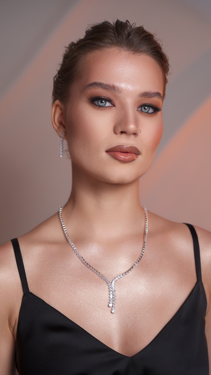 Конечно же мы выбрали вечерний макияж, который подчеркнет красивые голубые глаза нашей модели.