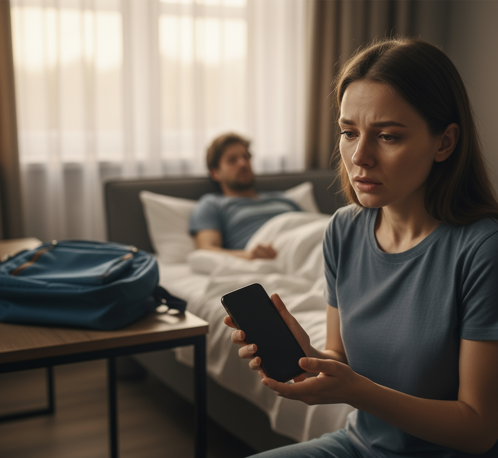 Он почувствовал этот тон. Медленно открыл глаза. Увидел ее — бледную, в ночной рубашке, с телефоном в руке. Увидел ее взгляд. Испугался.