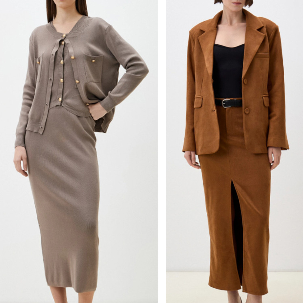 Зимой хочется тепла и комфорта, но не хочется стильно заморачиваться со стилизацией и усложнять аутфиты - поэтому играем с цветами и фактурами. И у меня готов для вас капсульный гардероб, который легко решит вопрос "нечего надеть". При этом его формула довольно простая: достаточное количество трикотажа, разнообразные низы и верхняя одежда. А также здесь все очень гармонично по цветам и фасонам. Капсула эта подойдет девушкам весенних цветотипов. В основе капсулы два костюма: Трикотажный - очень удачный вариант - тройка: можно носить все вместе, отдельно каждую вещь или миксовать в разных вариациях (кардиган с жилетом, жилет с юбкой) Под замшу трендовый материал, но более мягкий, чем натуральная замша, поэтому пиджак можно и под верхнюю одежду. Помимо верхов от трикотажного костюма, есть еще такие плечевые изделия: Лонгслив - тонкий, но теплый за счет шерсти в составе - идеальный первый слой. В этой капсуле можно надеть под пиджак или жилет от трикотажного костюма. Джемпер в полоску -