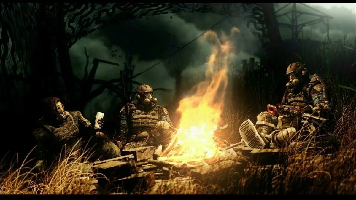 Данный рассказ является художественным вымыслом. Любые совпадения случайны. Приступы жестокости и трагических происшествий, добавлены лишь для атмосферности рассказа. При написании рассказа, ни один сталкер и мутант не пострадал! Всем добра! Мы осуждаем жестокость во всех ее проявлениях и формах! На Кордоне, в уютном чреве ложбины за остовом полуразрушенной фермы, где ветер стихал, не терзая комбинезоны, а дождь не норовил залить костёр, приютились пятеро сталкеров. Не слаженная бригада, не организованный отряд — лишь случайные путники, сведенные капризной волей Зоны на эту ночь у живого огня. Пламя костра плясало ровно, потрескивая сухими березовыми поленьями, и отбрасывало на лица танцующие, причудливые тени. Над костром, потемневший от копоти, висел котелок с чаем — не тем, что торгаши втридорога сбывают, а настоящим, в Зоне собранном, как бы дико это ни звучало: листья зверобоя, молодые побеги огненного папоротника, щепотка сушёной "маминой травки" для лёгкой сладости. Безопасно л