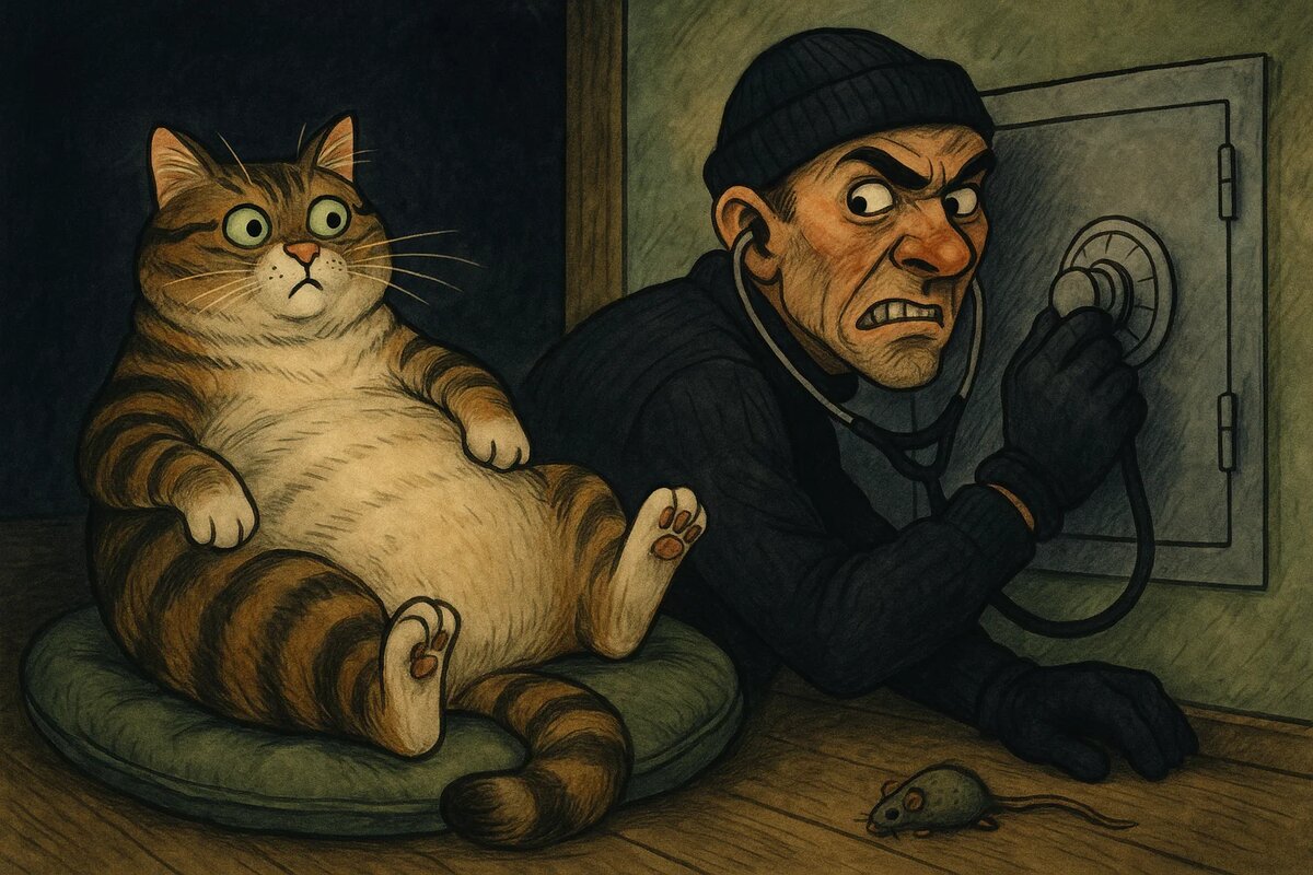 Тишкин бесшумно проскользнул в тёмную прихожую и прикрыл за собой дверь. Сердце билось ровно, потому что Тишкин был профессионалом и никогда не уходил без добычи. Он замер, давая глазам привыкнуть к мраку, и несколько минут просто слушал, сливаясь со средой чужой квартиры. Ловил скрип мебели и паркета, гул водопровода и батарей – житейские звуки, подтверждающие, что взлом прошёл незамеченным. Лишь одно смутило вора при входе: когда свет с лестничной клетки проник вслед за ним в квартиру, в глубине черноты вспыхнули и повисли в пустоте две изумрудные точки. «Что это?» – подумал Тишкин и сразу услышал, как нечто тяжёлое и неповоротливое бухнулось на паркет и засеменило к нему, стуча коготками. Кот. Жирный, мохнатый, с полосами и белым пятнышком на пузе. Он спрыгнул с комода и спешил проверить, кто нарушил его покой. О наличии кота в квартире Тишкин не знал. Он не любил котов. Во всяком случае, успокоил он себя, кот – не собака, проблем с ним не будет. А зверь меж тем подошёл к ночному