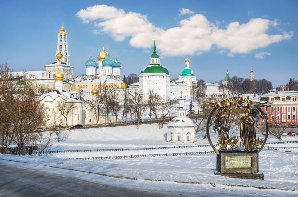 Главная достопримечательность — Троице-Сергиева лавра. Зимой она выглядит так, будто стоит не в XXI веке, а в середине русской легенды. Белые стены, голубые купола со звездами и мягкий снег, падающий почти беззвучно. На территории работают ремесленные лавки, где можно купить пряники, варенье или знаменитые матрешки Сергиева Посада.