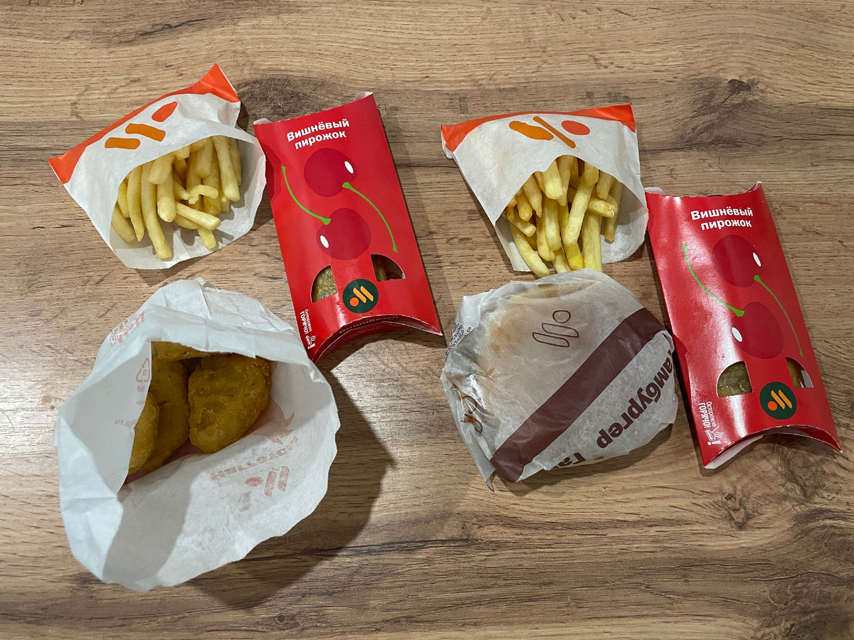 Опять сегодня целых 2 акции, можно перекусить бесплатно. В Альфа-банке 100% кешбек по акции во Вкусно и точка: сегодняшнее предложение довольно неплохое, за 199р можно собрать набор на свой вкус. Выбрать можно из следующих продуктов: гамбургер, 4 наггетса, маленькая картошка, вишневый пирожок. Мы собрали 2 разных набора: в одном гамбургер, картошка и пирожок, в другом наггетсы, картошка и пирожок. И в Т-банке у многих сегодня ОПЯТЬ 100% кешбек на сыр Supreme, у нас выпало на всех картах, еще успеваете взять, в Пятерочках его полно. Максимальный кешбек 350р, но он в магазине сейчас намного дешевле - 249р. Берите, очень вкусный сыр, без сильного акцентного вкуса, подходит и к овощам, и к омлету, отличный белковый перекус! В прошлый раз брали "родственника" этого сыра всего 20 дней назад, у нас еще последняя упаковка осталась. У них один производитель, как оказалось, и на вкус абсолютно одинаковые, просто теперь сыр похожий на иностранный и сыр похожий на российский :) А что у вас?