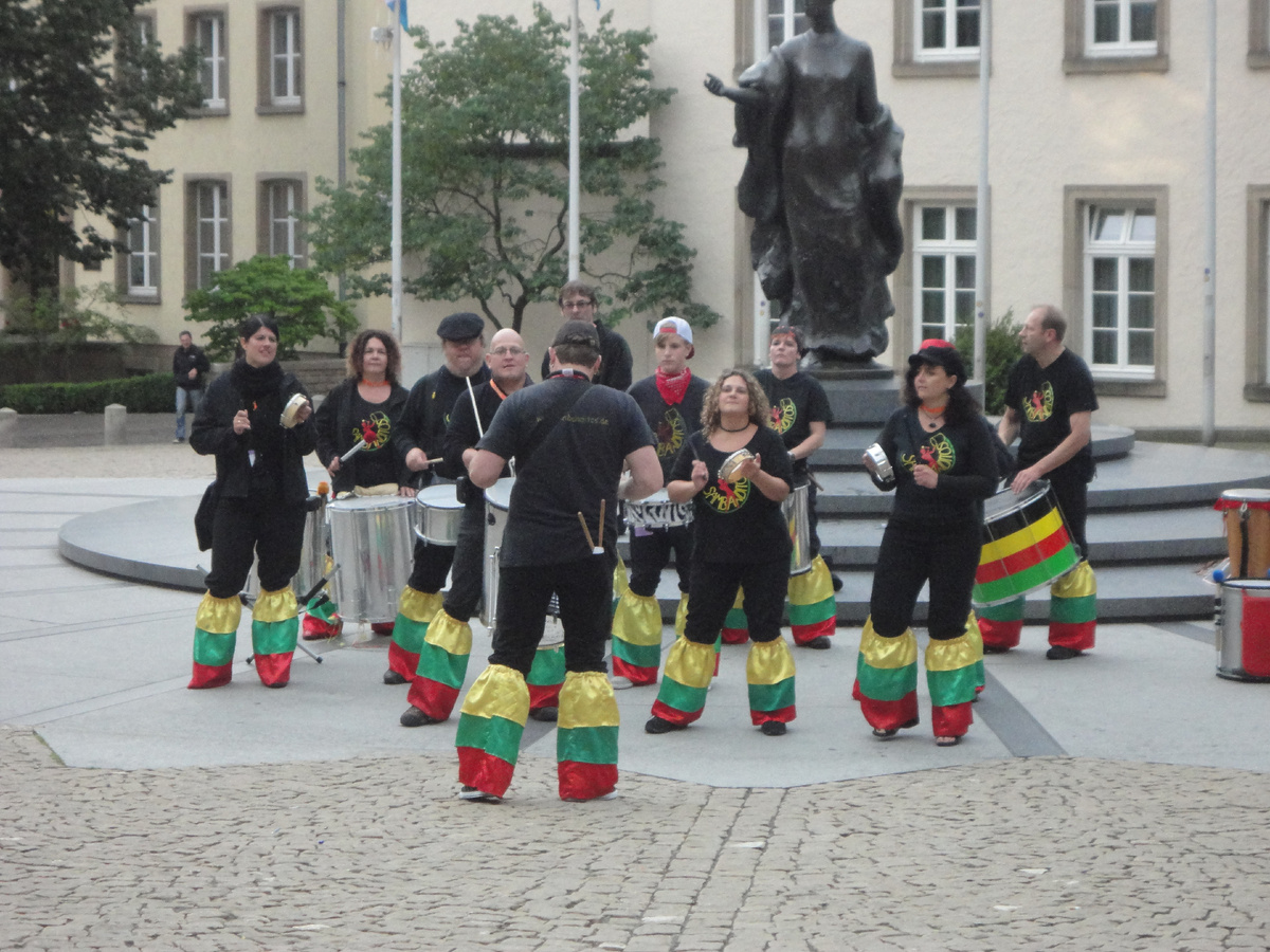 Люксембуржцы очень любят различные конкурсы. Еженедельно по пятницам в городе проходят различные конкурсы: хорового пения, вышивания, вязания крючком, конкурс выпечки и всякие другие. Главное, приехать в город в пятницу к вечеру, и вы обязательно попадете на какой-нибудь праздник или конкурс. Мы попали в пятницу в которую проводился конкурс барабанщиков. Коллективы собираются самые что ни есть разные. И семейные коллективы, и соседи, и коллеги по работе объеденяются в группы. При таком количестве групп барабанщиков которые мы увидили, создалось впечатления что в барабаны стучит весь город :) Соревнования проходят на разных площадках, вот например несколько групп соревнуются у памятника Великой герцогине Шарлотте на Площади Клерфонтен . А эти расположились на улочке около площади Гийома II Вот еще одна группа торопится на конкурс, и бегом бегут к своему месту. Опаздывают бедняги :)))) А это действие происходит на Площади Place d'Armes. По слаженности коллективов, становится понятно,