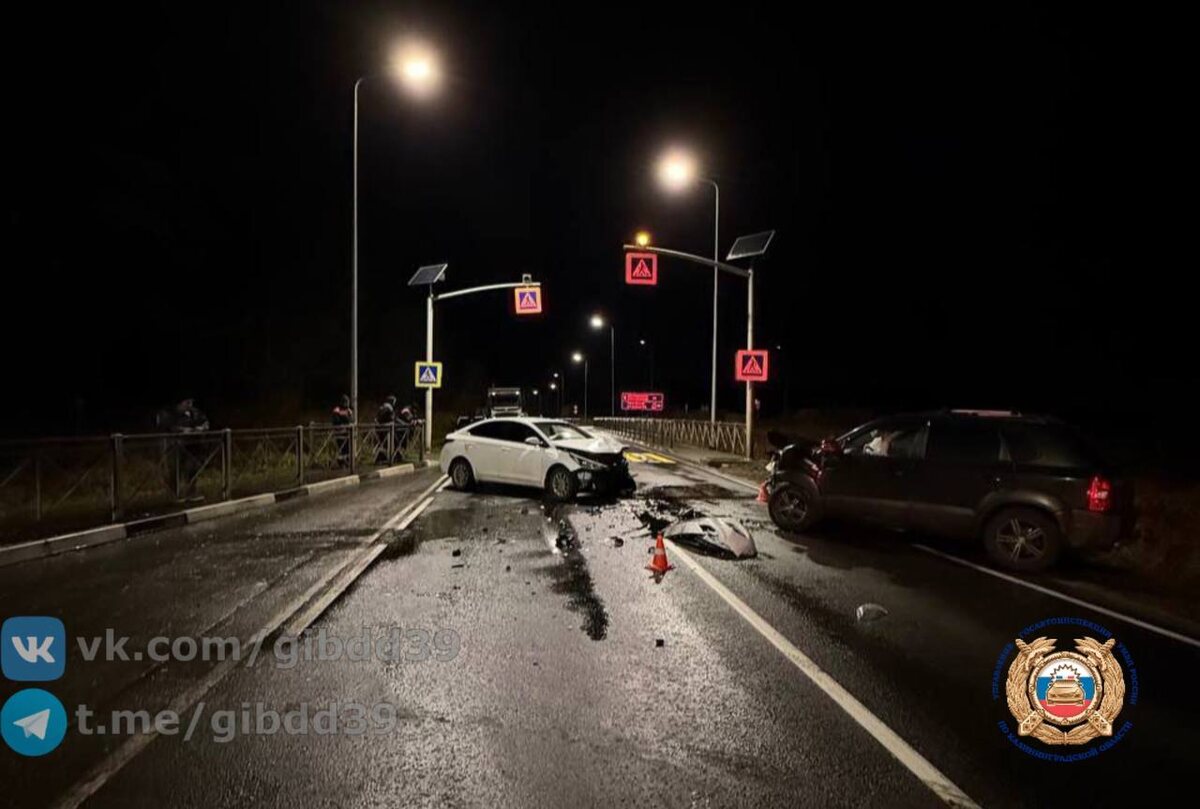 По оперативной информации, сегодня 12.12.2025 в 17:15 на 14 км 600 метров автодороги «Романово - Калининград», водитель, управляя автомобилем «Хендай Солярис», выехал на полосу встречного движения, где допустил столкновение с автомобилем «Хендай Туксон», двигавшимся со встречного направления.