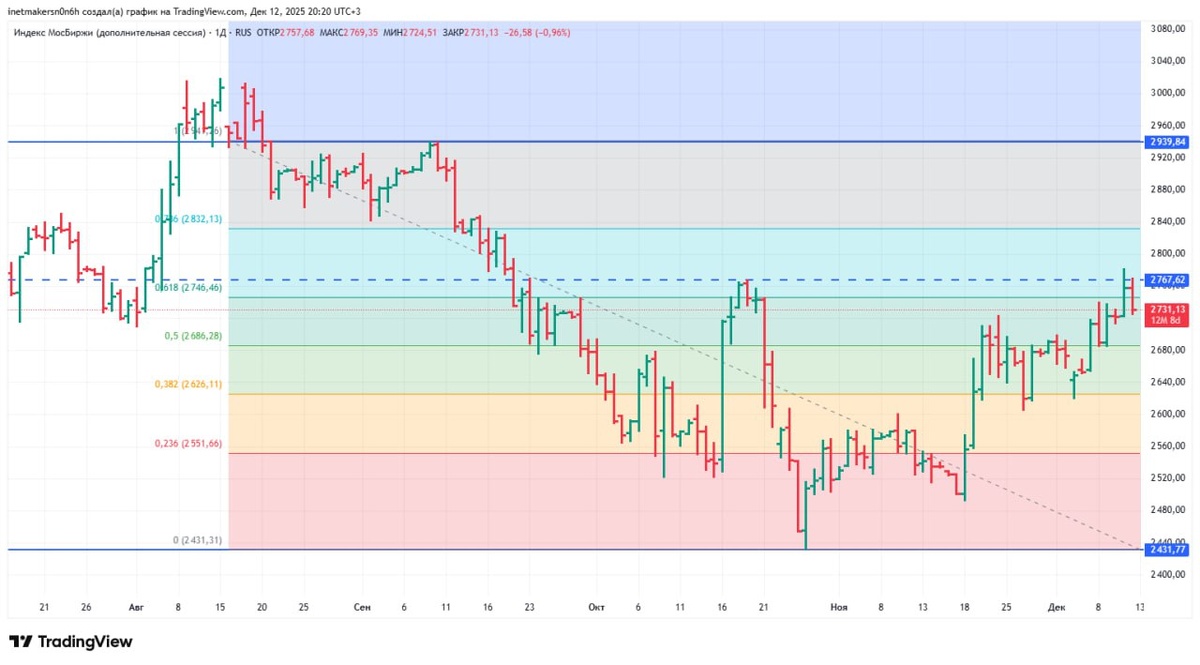 ❗️12 декабря российский фондовый рынок снизился, индекс МосБиржи подешевел на 0,34% до уровня 2739,49.