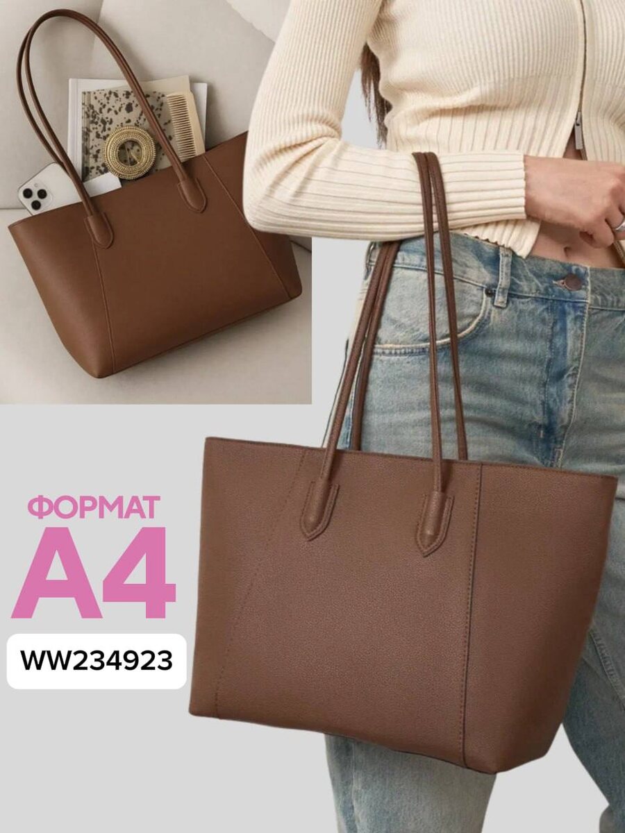 Эта сумка — настоящий пример того, как функциональность может выглядеть элегантно. Модель выполнена в классическом формате шопер, который остаётся актуальным вне сезонов и трендов. Мягкий, тёплый оттенок коричневого смотрится благородно и дорого, не перегружает образ и легко сочетается как со светлой, так и с тёмной одеждой.