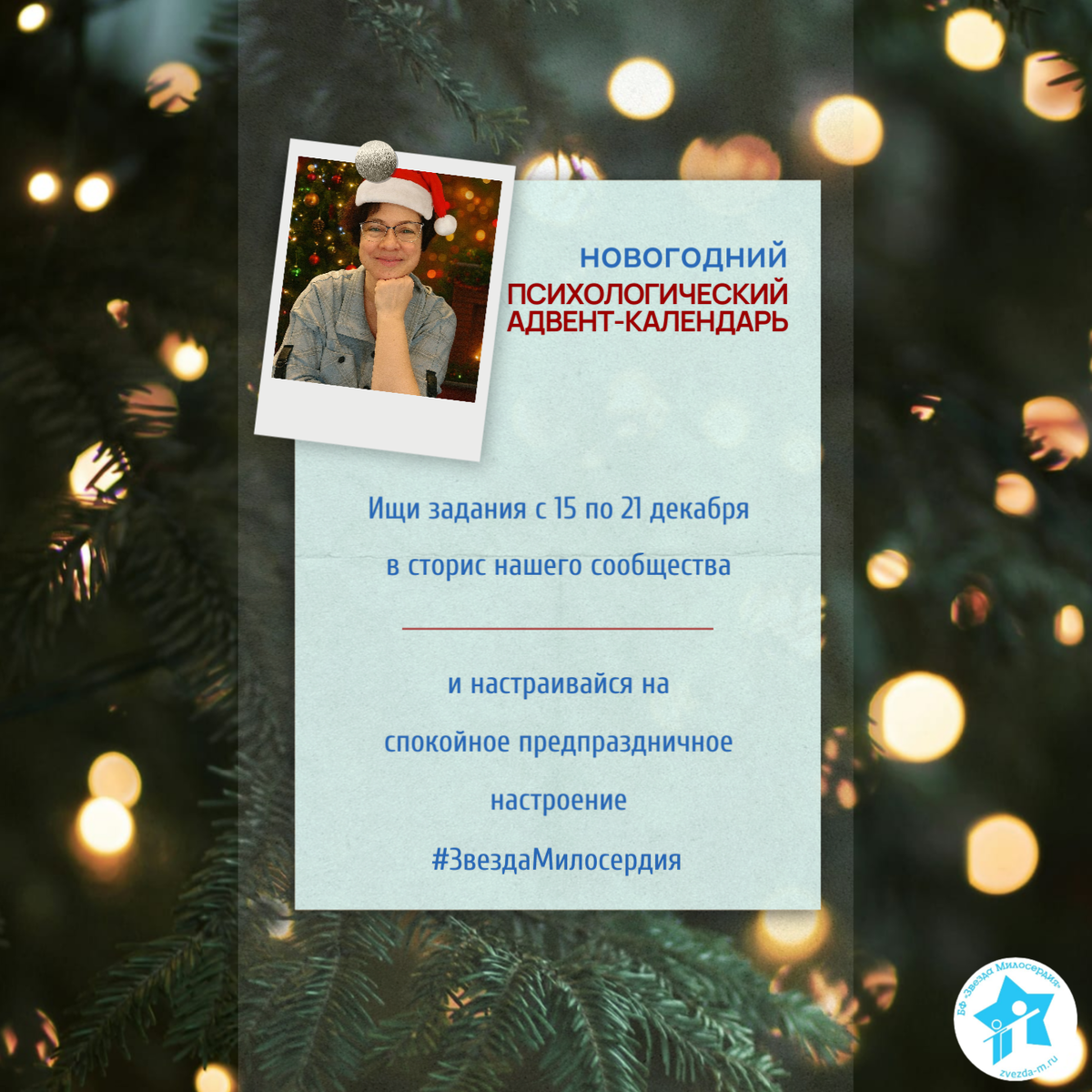 Друзья, вот мы и пересекли экватор декабря, а это значит, что в наших публикациях начнут появляться праздничные, но обязательно полезные материалы. Кроме того, на этой неделе мы вместе с психологом фонда Любовью Кяргинской запускаем в сторис нашего сообщества в ВК собственный адвент-календарь. Он рассчитан на 7 дней. И выполнение его заданий поможет вам немного замедлиться и выдохнуть (год был о-го-го, какой продуктивный и, если честно, пора начинать готовиться к каникулам), а также настроиться вам и вашим близким на душевный праздничный лад. Итак, заходите в наши сторис, смотрите новое задание и прочувствуйте атмосферу ожидания того, что на пороге вот-вот появится 2026 год. #ЗвездаМилосердия