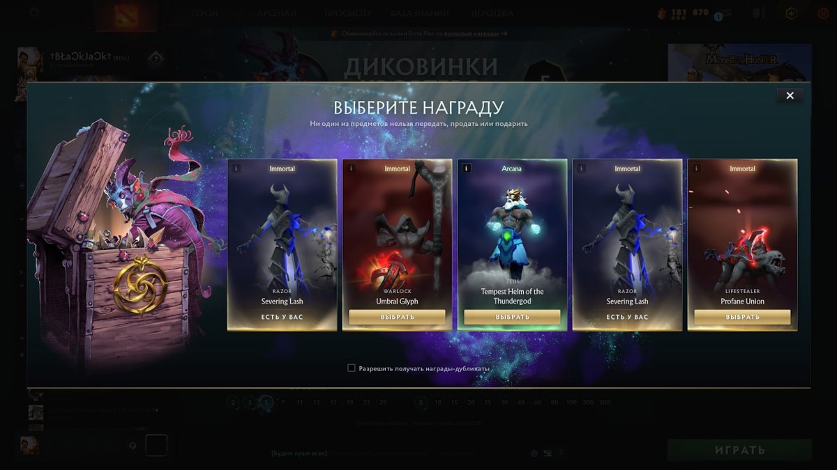 Забавно, но в выборе раритетов могут встретиться дубликаты. Пошёл создавать тему на