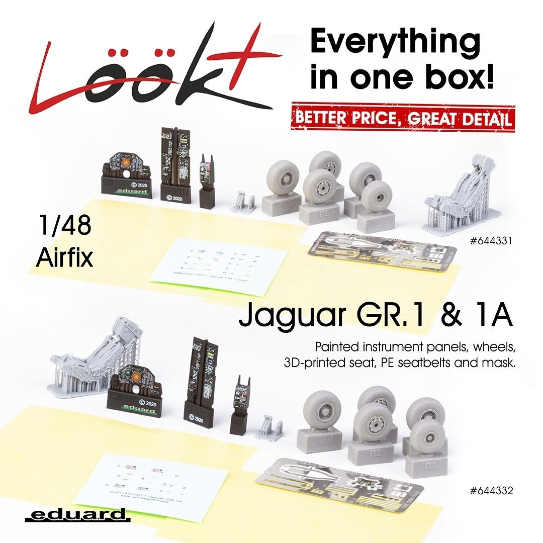Чешская Eduard выпустила смоляные деталировочные наборы для для моделей Jaguar GR.1 и GR.1A в масштабе 1/48 от Airfix