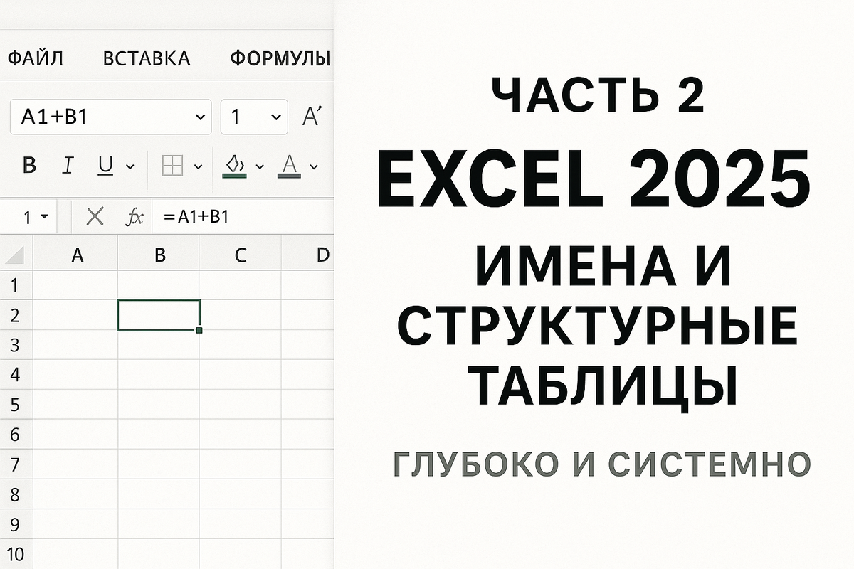 EXCEL 2025: ИМЕНА, СТРУКТУРА ФОРМУЛ, ЛОГИКА МОДЕЛИ И ПРОФЕССИОНАЛЬНЫЕ ПРИЁМЫ. Подробный профессиональный разбор Excel 2025: использование имён, структурированных ссылок, таблиц, диапазонов, универсальных формул, автоматизации расчётов, построения надёжных моделей и оптимизации вычислений. Материал подходит аналитикам, специалистам по данным, бухгалтерам, финансовым моделистам, новичкам и опытным пользователям Excel.
