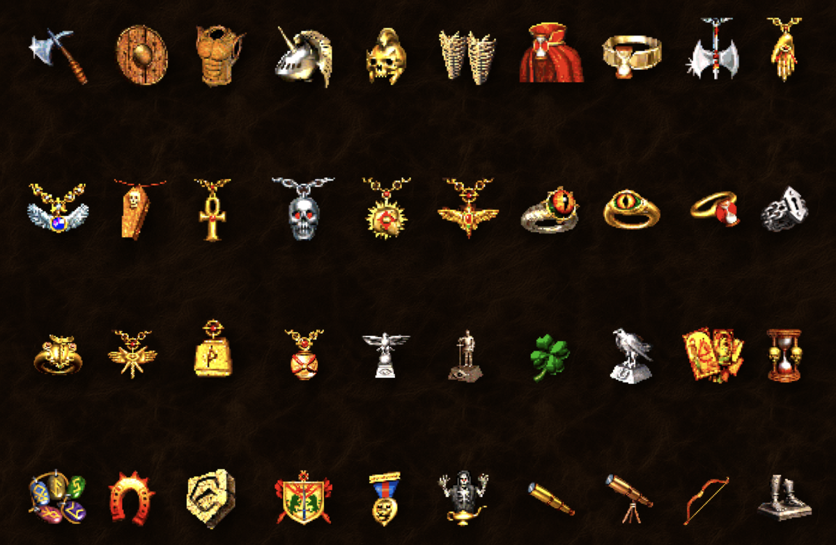 Но начнём мы с самых простых предметов, Сокровищ, которые вовсе не сокровища в мире игры, а что-то вроде хлама, временная мера, пока вы не найдёте что-то получше. Справедливости ради, бонусы от артефактов, которые помещаются в «разное», прослужат вам долго, а это обычно: +1 к Удаче или Морали, к радиусу обзора, или штраф к Удаче и Морали противника.