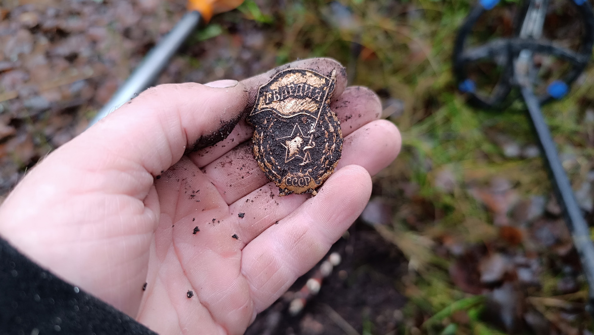 Сигналов — море. Конечно, копать здесь непросто: много мусора. Попадаются осколки снарядов — эхо 1944 года, медные пояски, непонятные латунные пластинки.