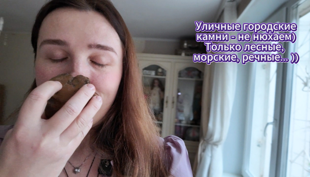 Камни длительное время могут сохранять свой природный запах, а затем напитываются окружающей средой и становятся "своими" домашними камнями. В твёрдых породах, например таких, как кремень, за запах отвечают частицы почвы в микротрещинах, отложения по трещинкам-ямочкам солей из воды - дожди, ручьи, реки, море... А самая "пахучая" порода - это известняк: намочишь камешек - и вновь чувствуешь "запах пещеры". Знаете, в парках аттракционов есть такое: 3d, 5d, 7d А название "12d" сопровождается восклицательными знаками. Это "d" - от английского слова "dimension" - что в переводе на русский язык означает "измерение", "дополнительное ощущение". Так вот нюхать камни - это как получение ещё одного "измерения", дополнительного ощущения, которое делает понимание мира камня объёмнее, ярче и удивительнее. Иногда лесные камни по свежему сколу пахнут йодом - тогда можно предположить, что камень провёл длительное время в водах древнего моря, вода просочилась по мелким трещинкам внутрь камня... и