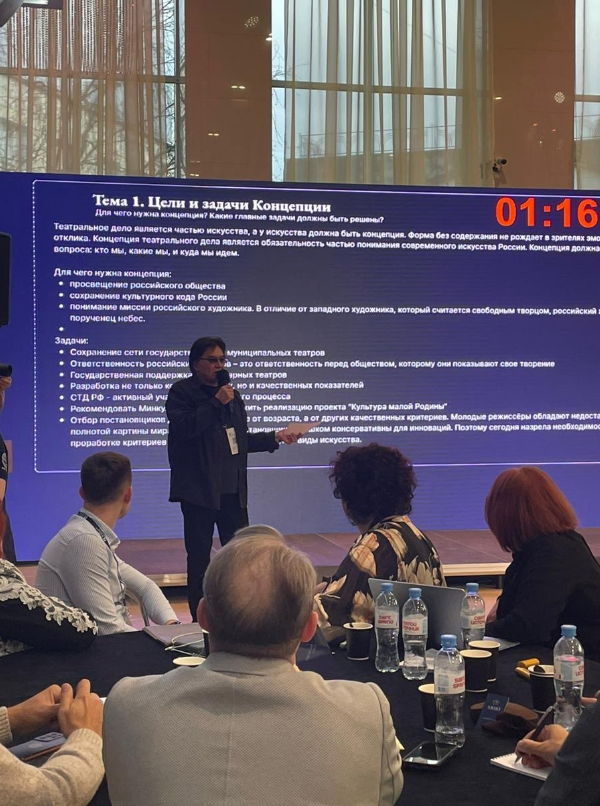 На форуме Союза театральных деятелей, который состоялся в конце ноября в Рязани, главный режиссер театра «РАМС» Евгений Хунгуреев предложил создать государственную программу «Земский артист». Кадровый голод в театрах малых городов – проблема, скорее, общероссийская. Программа, если она будет разработана и принята, поможет театрам малых городов решить проблему с кадрами. Также Евгений Кимович внёс предложения по разработке критериев оценки деятельности театров не только по количественным, но и по качественным показателям. То же касается критериев отбора постановщиков директорами театров: не по возрастному критерию, а по профессиональному. Главный режиссер нашего театра сформулировал и озвучил основные позиции будущего развития театра. Итоги и предложения форума будут рассмотрены центральным аппаратом Союза театральных деятелей.