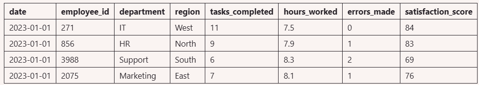 Мы собрали смоделированный набор данных о работе сотрудников внутри компании. Его идея заключается в том, чтобы показать вам: как аналитик может работать с реальными операционными метриками, если будет смотреть на загрузку отделов, оценивать качество процессов, находить узкие места и делать рекомендации.