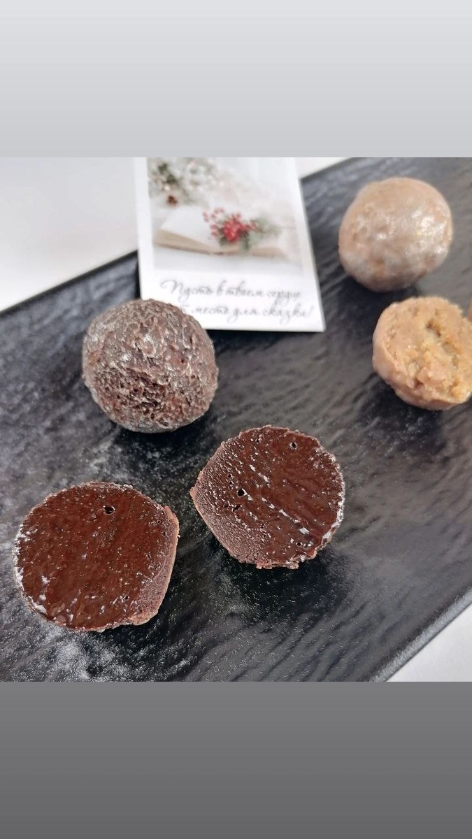 Самый брутальный трюфель - фундучный латте. Название говорит само за себя). Темный шоколад с фундучной пастой и кофе в тонком слое тёмного шоколада. Идеальный баланс вкусов! Эта конфета понравилась даже моей дочери, хотя она категорически не любит темный шоколад. Делайте выводы)