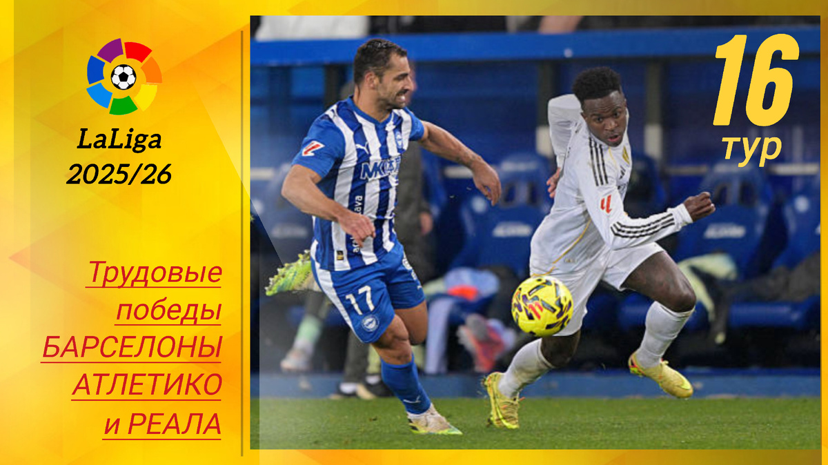 Из четвёрки лидеров в этом туре играли трое. Все добились побед, но пришлось постараться. "Сине-гранатовые" только в самой концовке благодаря "дублю" Рафиньи смогли сломить сопротивление гостей из Памплоны. "Бланкос" взяли три очка в Витории - автором победного мяча стал бразилец Родриго. А решающий гол "матрасников" записал на свой счёт французский ветеран Антуан Гризманн.