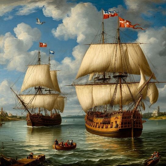 - На борту — бочонки с солониной, вяленой рыбой, сухарями, вином, пресной водой (часто портящейся), компас, астролябия, песочные часы, лаг (для измерения скорости), но без точных карт — только схематичные портоланы.