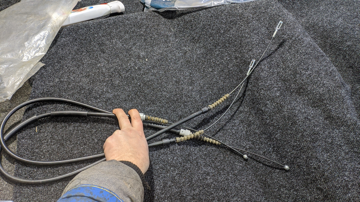 - Действие: Установите новые тросы по обратной схеме: сначала закрепите боковые тросы в задних тормозах, затем протяните к крабу, зафиксируйте центральный трос и подключите к рычагу.