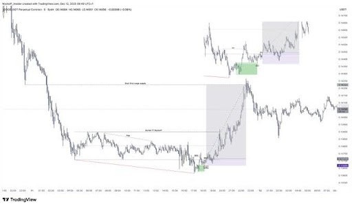ΠΎΠ΄ΠΈΡΡΡ Ρ Π²ΡΡΠΎΠΊΠΎΡΠΈΠΌΠΎΠ²ΠΎΠΉ Wyckoff ΠΊΠΎΠ½ΡΠΈΠ³ΡΡΠ°ΡΠΈΠ΅ΠΉ Dogecoin ΡΠΆΠΈΠΌΠ°Π΅ΡΡΡ Π² ΡΠΈΠΌΠΌΠ΅ΡΡΠΈΡΠ½ΠΎΠΌ ΡΡΠ΅ΡΠ³ΠΎΠ»ΡΠ½ΠΈΠΊΠ΅, ΡΠΎΠ³Π»Π°ΡΡΡΡΠ΅ΠΌΡΡ Ρ Π²ΡΡΠΎΠΊΠΈΠΌ ΡΠ°ΠΉΠΌΡΡΠ΅ΠΉΠΌΠΎΠΌ Wyckoff, ΡΡΠΎ ΡΠΊΠ°Π·ΡΠ²Π°Π΅Ρ Π½Π° ΠΈΡΡΠΎΡΠ΅Π½ΠΈΠ΅ Π½ΠΈΡΡ