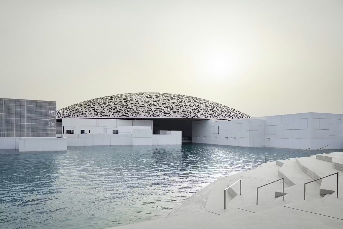Это место одновременно спокойное и сложное. Оно отличается от многих музеев, в которых я был. Оно настойчиво подчёркивают свою исключительность. Архитектура Лувра основана на главном символе арабского зодчества — куполе, но переосмысленном современно. Двойной купол диаметром 180 метров, сплетённый из ажурного материала, отбрасывает узорчатую тень, пронизанную светом. Днём он сверкает под солнцем Абу-Даби, а ночью превращается в сияющий оазис под звёздным небом.