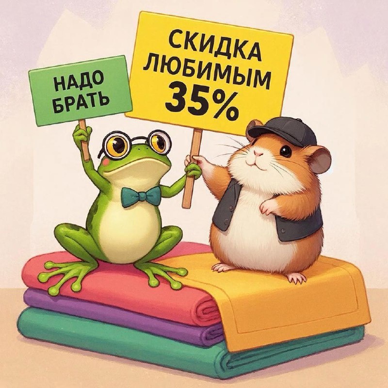 ❤️ Если это не любовь, то что вообще? Просто так, от души, ради вашего хорошего настроения и полного гардероба. На ровном месте. В честь дружбы хомяка и жабы магазин с самыми низкими ценами на ткани и трикотажные полотна (это мы) делает скидку 35%. https://tkani.site/ Скидка: 35% Купон: 1213SNW Скидка работает до 23:59 (МСК) 13 декабря. Купон не применяется на товары со скидкой, а также на футер и флис. Серьёзно, футер и флис продаётся у нас дешевле приличия, даже с учетом доставки.