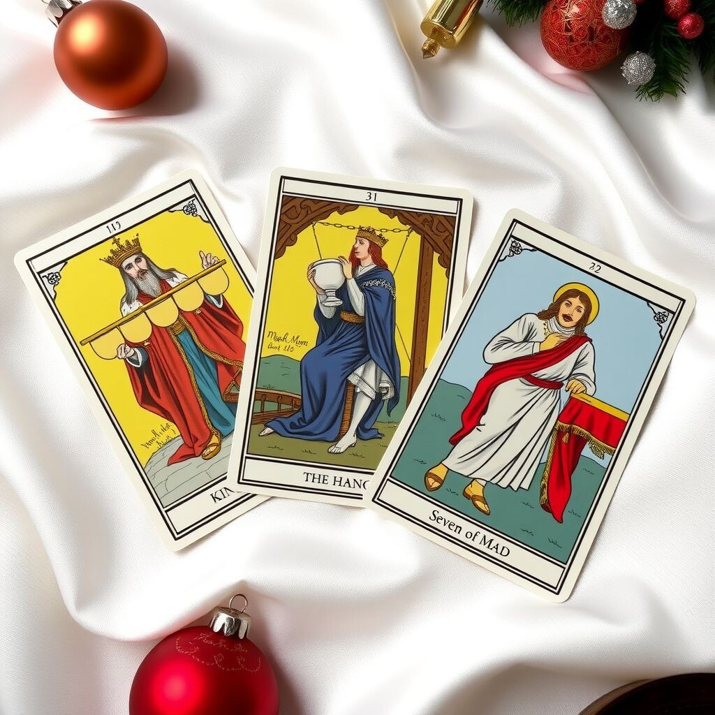 Этот триплет карт говорит о том, что мужчина испытывает глубокие, зрелые чувства к вам (Король Кубков), но его "следующий шаг" – это не действие, а скорее период глубокой внутренней паузы, осмысления и получения новой перспективы (Повешенный), потому что он находится в состоянии замешательства или выбора среди множества эмоциональных возможностей или иллюзий (7 Кубков).