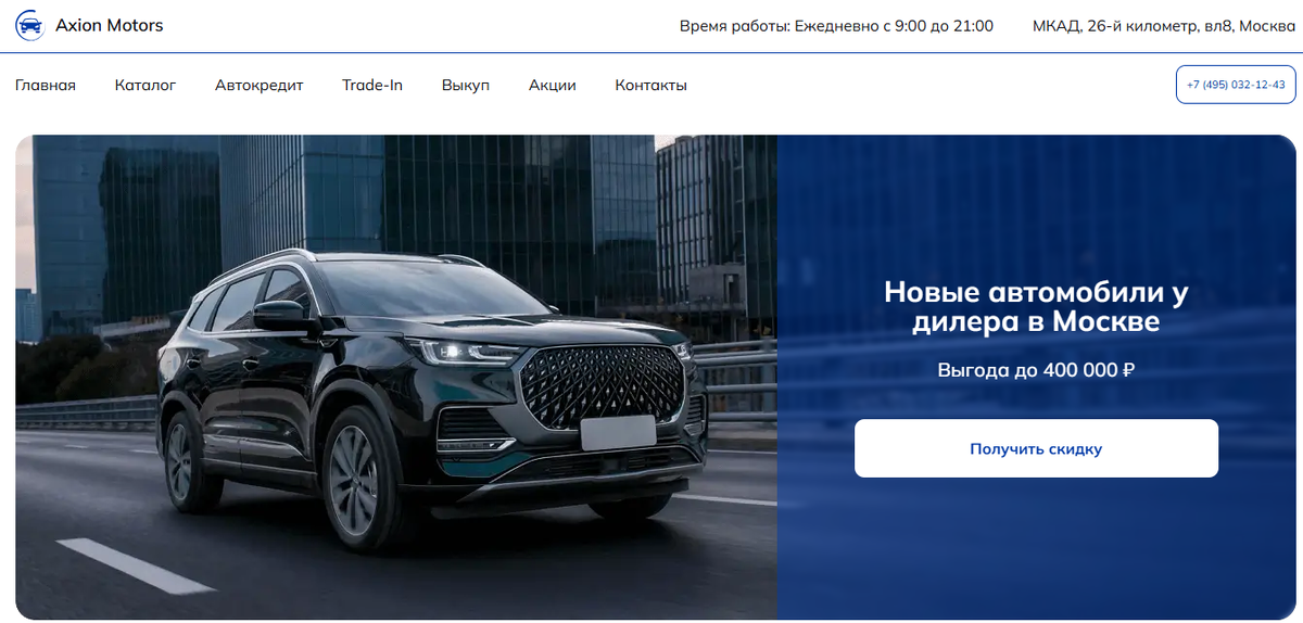 Axion Motors — это автосалон в Москве. Открылся не так давно, в честь чего дилер объявил скидки. Сайт создан по шаблону, который часто используется неблагонадежными салонами. Ценовое предложение не подкреплено публичной офертой. Это кажется подозрительным, поэтому мы решили провести проверку. Справка об автосалоне, информация о владельце и проверка по судебным базам Адрес: МКАД, 26-й километр, вл8, Москва Сайт: axnm.ru Тип: мультибрендовый салон, серый дилер Направление работы: продажа новых автомобилей В автосалоне на 26-ом км МКАД в Москве можно купить новый автомобиль. Дилер привлекает внимание потенциальных покупателей скидками и акциями. Однако столь низкие ценники кажутся подозрительными. Особенно при условии отсутствия публичной оферты (сам сайт таковым не является). Автосалон позиционируется как мультибрендовый. В его каталоге содержится более 20 марок. Однако достоверных сведений о наличии авто в выставочном зале на сайте нет. Также настораживают условия по кредиту. Дилер,