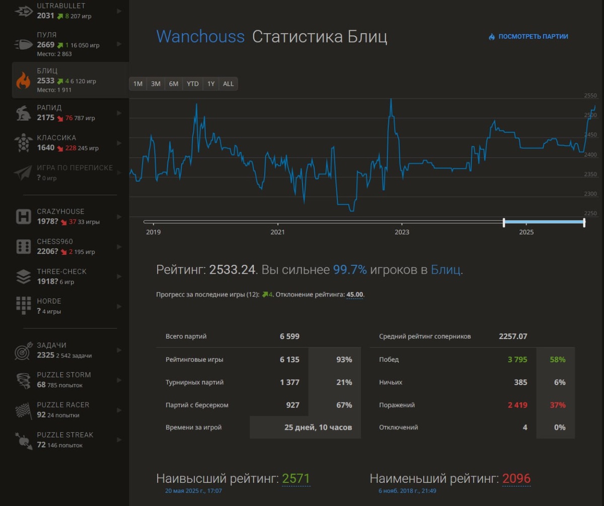 Пора 2600+ Блиц и Пулю к 2800 пробивать📈
