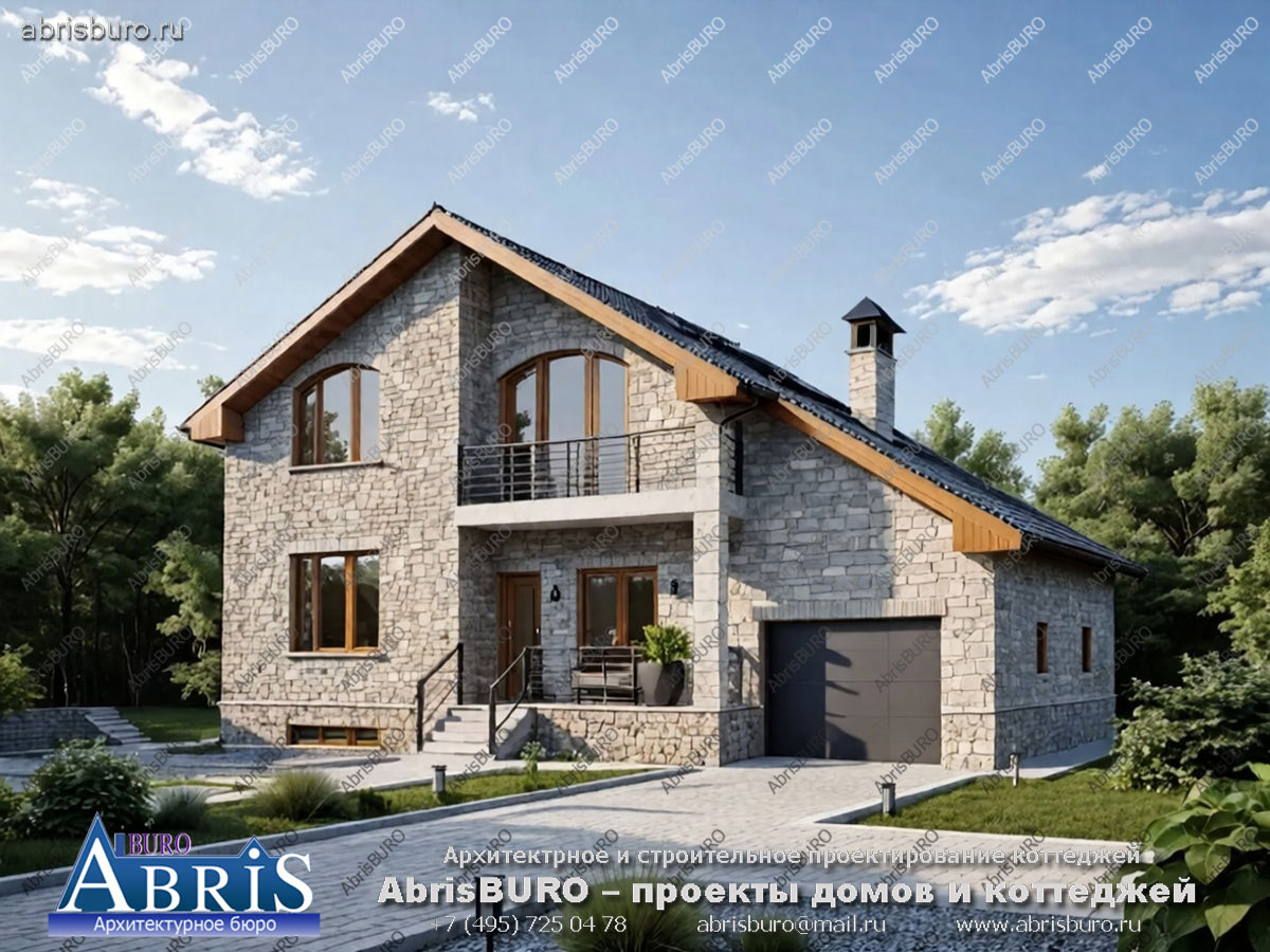 Проект 1,5 этажного коттеджа K2167-222 с гаражом, крыльцом и балконом