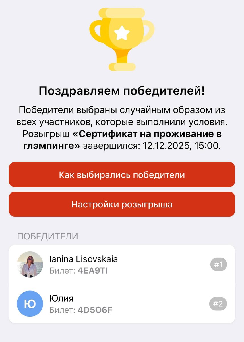 Сегодня у нас два победителя сертификатов на проживание в глэмпинге !!!