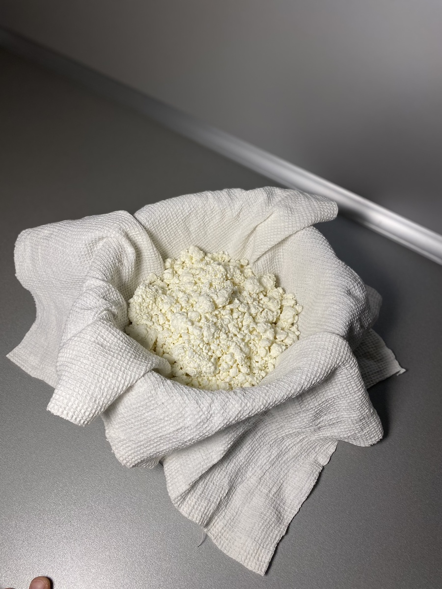 Добрый вечер! Меня зовут Дмитрий и я работаю поваром. Я очень люблю сырники и хочу показать, как я их готовлю. Берем творог 5% жирности. Мне нужно ровно 1кг. Я беру две пачки по 0,5кг, мне этого хватает на один замес. Творог необходимо отжать от лишней влаги, я использую для этого полотно, но подойдет и обычная марля. Отжимаем лишнюю влагу. Далее добавляем рисовую муку, 4 столовых ложки с горкой. Добавляем сахар, 4 столовых ложки с небольшой горкой. Теперь добавляем 2 желтка и ванильный сахар. После этого пробиваем смесь через блендер до однородной массы. Замешиваем наше тесто и убираем в холодильник на 30-40 минут. Теперь отмеряем по 50гр каждый сырник С помощью пресс-формы придаем эстетичный вид. Можно обойтись без этого и формовать руками. Убираем в морозилку до полной заморозки. После я порционно вакуумирую замороженные сырники, так они не теряют форму. Наклеиваю наклейку с составом и датой изготовления. Кушаю сам, угощаю друзей, иногда продаю. На всякий случай - НЕ ХАЛЯЛЬ. Кулин