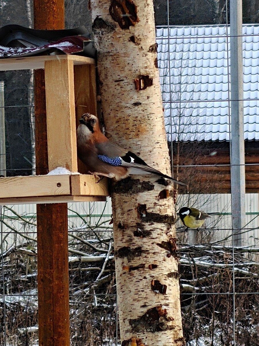 Новости из моей кормушки для лесных птиц. Теперь у меня три сойки