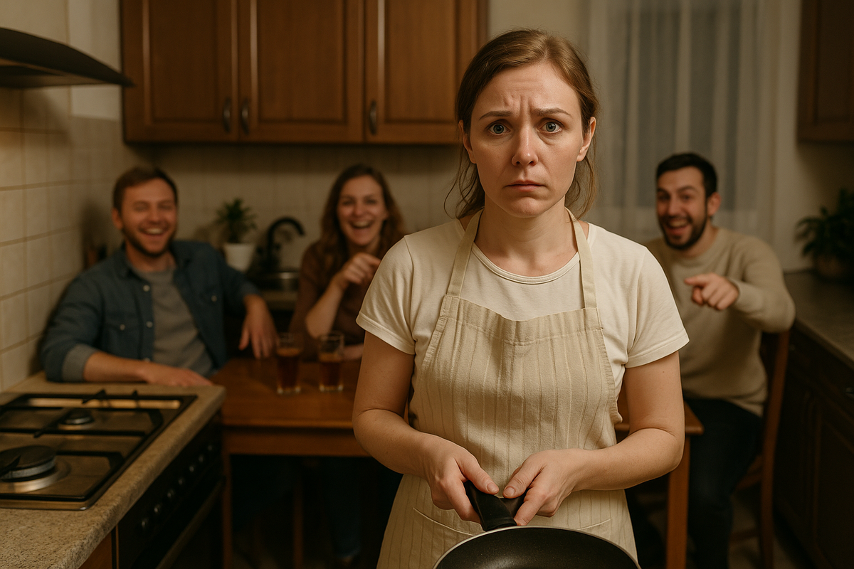 Жена стояла у плиты молча. Без наушников, без музыки, без разговоров по телефону. Так стояли тысячи женщин до неё — когда дом полный людей, а в голове только список дел: мясо перевернуть, салат не заветрить, соус не забыть, хлеб нарезать аккуратно, чтобы «как у людей».