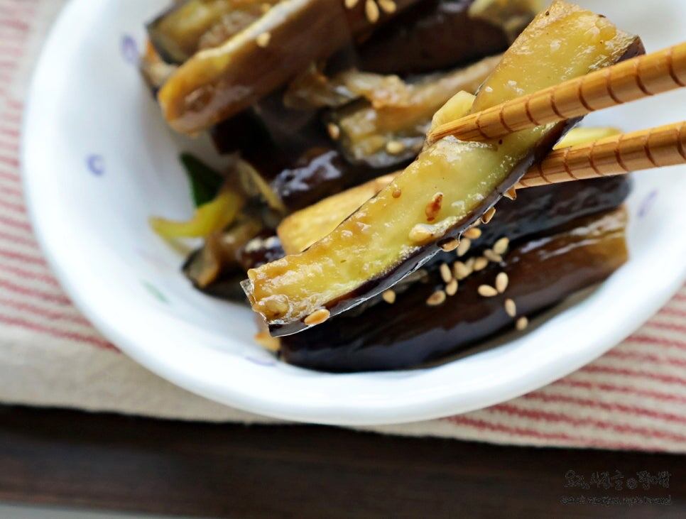 Перед жаркой баклажаны нужно: 1. Замариновать в соли, чтобы удалить лишнюю влагу. 2. Обжарить чеснок и лук до появления аромата — это создаст масляную основу. 3. Обжарить подготовленные баклажаны — так они сохранят свой вкус. 4. Добавить соевый соус и тушить. Так блюдо получится идеальной текстуры — не водянистым, а с насыщенным вкусом! Попробуйте! Ингредиенты: · Баклажаны — 3 шт. · Соль для замачивания — ½ ч.л. · Оливковое масло — 1,5 ст.л. · Зеленый лук (дэпа) — ½ стебля · Соевый соус (джин-ганджанг) — 1 ст.л. · Рыбный соус — 1 ст.л. · Чеснок (измельченный) — 1 ст.л. · Кунжутное масло — ½ ст.л. · Кунжутные семена — щепотка · Молотый черный перец — щепотка Приготовление: 1. Нарезка и маринование Вымойте и подготовьте 3 баклажана и зелёный лук. Нарежьте баклажаны: сначала разрежьте каждый вдоль на 6 длинных полосок, затем каждую полоску — вдоль еще на 3 части. Добавьте половину чайной ложки соли и замаринуйте баклажаны примерно на 10 минут. Зеленый лук тонко нарежьте попере